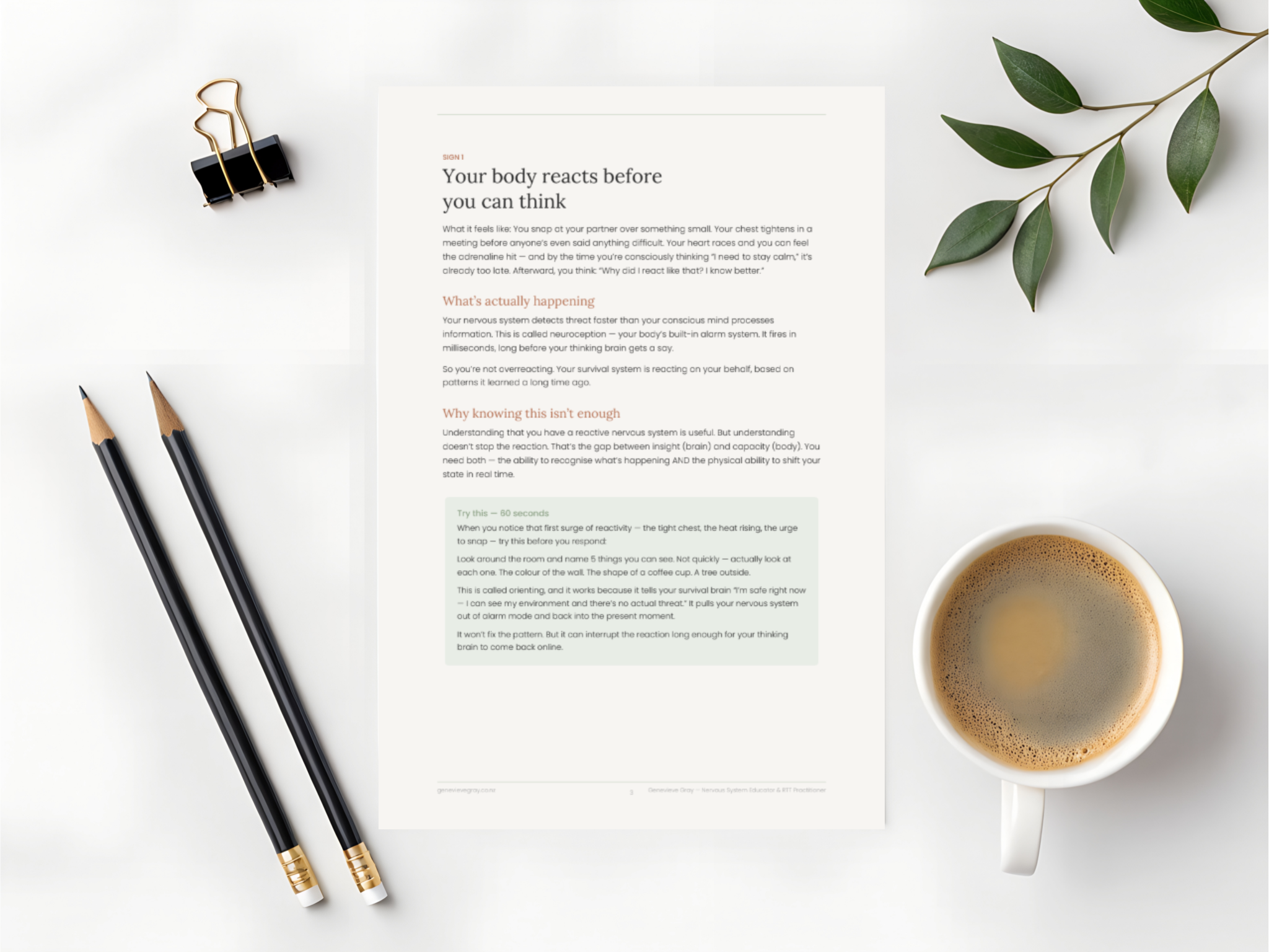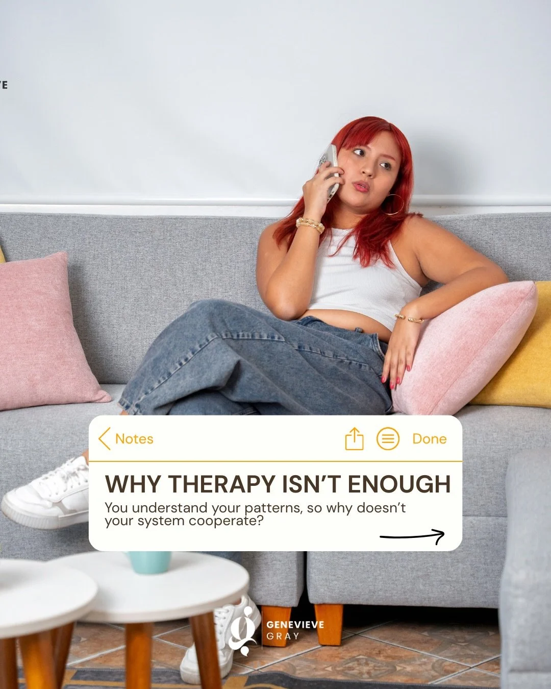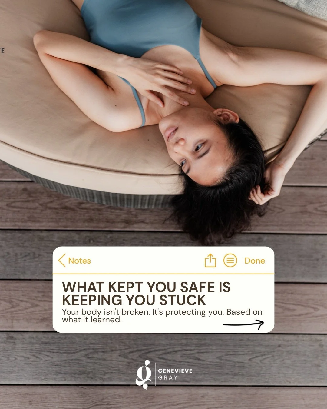 EMBODY runs twice a year with a small number of clients each round. The next cohort begins April 2026, with a second cohort in September 2026. Join the waitlist to be notified when spots open, or email me at info@genevievegray.co.nz if you'd like to discuss timing
